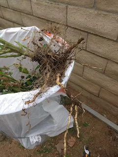 Well the roots were certainly healthy, a lot of popping sounds when I was digging it out. I had to use the shovel because of how it had spread out so much. That's a good sign though, all the plants have had great root systems and I'm really thrilled to see it.