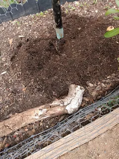 Here's how the corner turned out though, cleaned up with bark and everything organized.