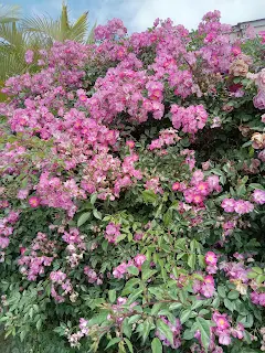 The rose on my walk is incredible. I wish I knew the name of them both, the bigger, darker pink flowered one rings a bell in my mind from decades ago but have no idea and the second one is totally unknown to me. I will have to post pictures on the garden group to see if any of the rose experts there know.