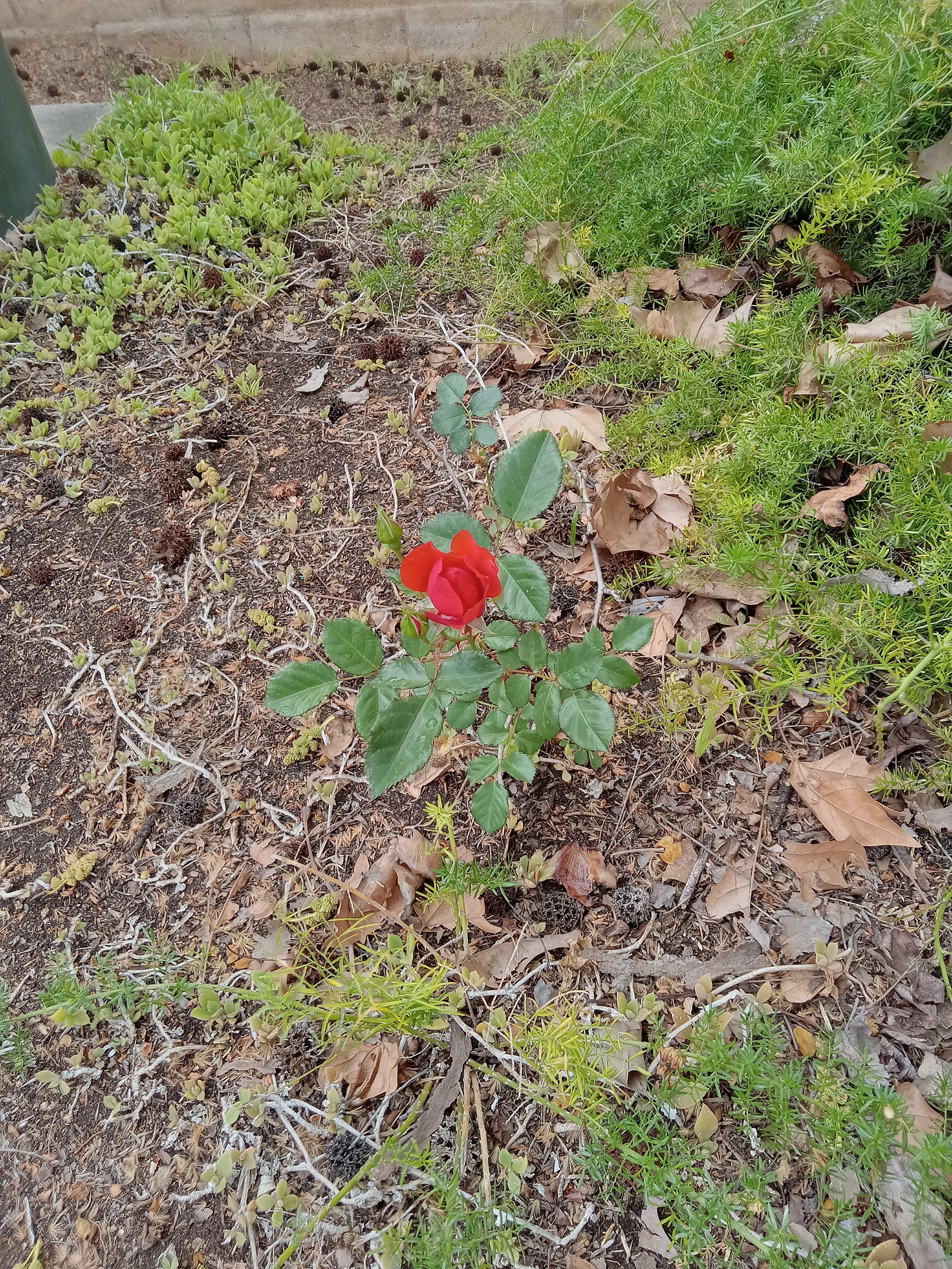 So sad, they should be replaced but if they get new bushes then they'll be mistreated like the old ones have been and .... The red one at the bottom is near the Montbretia and is root stock blooming. No idea what that bush used to be, that's the only flower that's ever bloomed on it since we've been here.